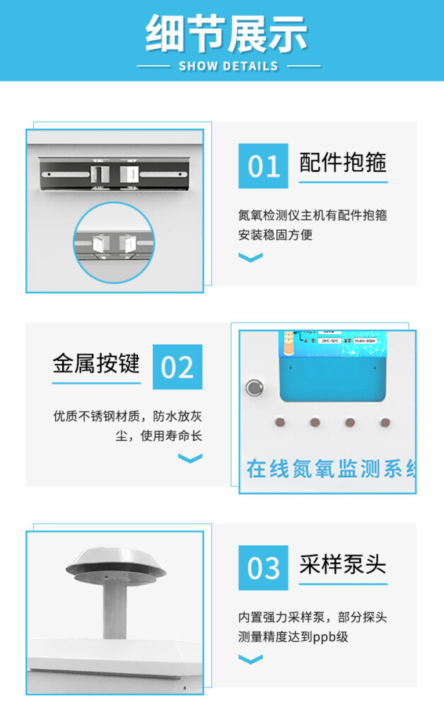 1、配件抱箍:氮氧檢測(cè)儀主機(jī)有配件抱箍,安裝穩(wěn)固方便。
