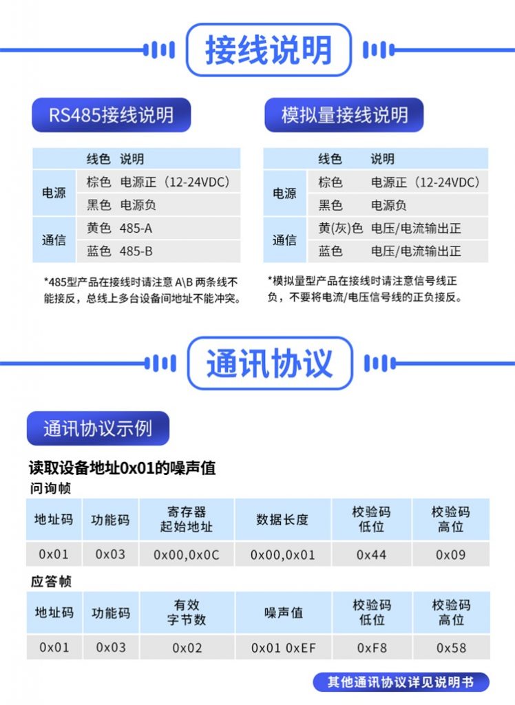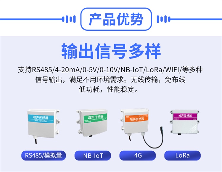精訊暢通自主研發(fā)的RS485噪聲傳感器可以廣泛應(yīng)用于倉(cāng)庫(kù)機(jī)房、生產(chǎn)車間、檔案室、圖書館、學(xué)校、商城、智能家居、樓宇控制等領(lǐng)域。具有多種傳輸信號(hào),可以更好的滿足不同客戶的具體需求。具低功耗、穩(wěn)定性強(qiáng),抗干擾能力強(qiáng),采用IP65的高密度外殼,無(wú)懼惡劣環(huán)境。