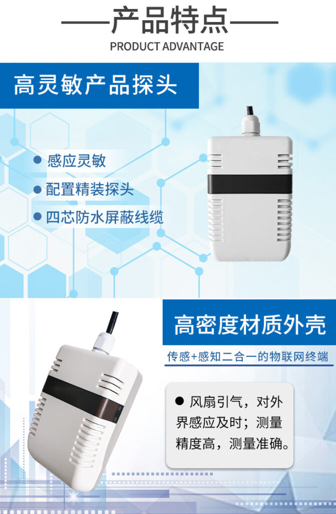 2、精品探頭:顆粒物傳感器內(nèi)置高靈敏度探頭,精度高,線性度好便于安裝,傳輸距離遠。