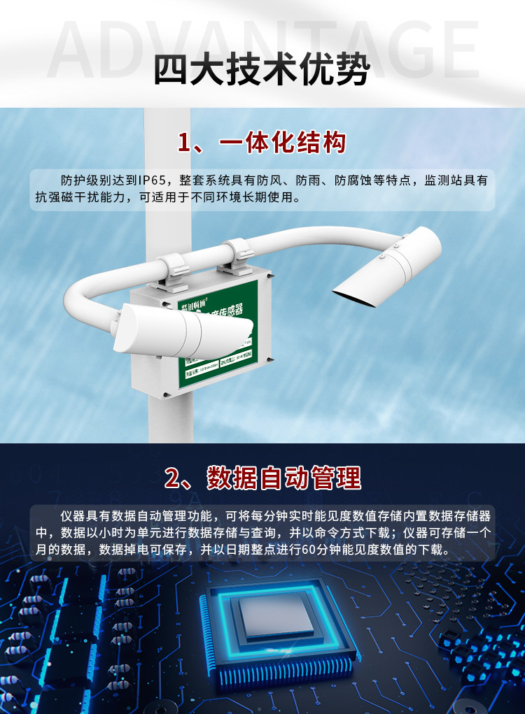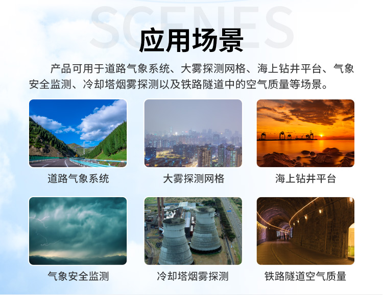 大霧能見度監(jiān)測儀是可以連續(xù)測量輸出大氣能見度的空氣質(zhì)量傳感器。大霧能見度監(jiān)測儀具有數(shù)據(jù)自動管理功能,可將監(jiān)測的數(shù)據(jù)存儲到數(shù)據(jù)存儲器中,可儲存一個月的數(shù)據(jù)。能見度儀采用RS485與監(jiān)控計算機通訊,把監(jiān)測數(shù)據(jù)上傳至管理者那里,并給出狀態(tài)報警指示。能見度傳感器可用于道路氣象系統(tǒng)、大霧探測網(wǎng)格、海上鉆井平臺、氣象安全監(jiān)測、冷卻塔煙霧探測以及鐵路隧道中的空氣質(zhì)量等場景。