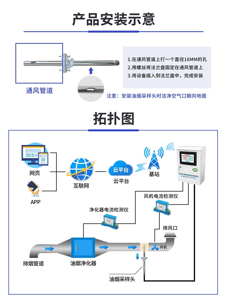 1、集嵌入式技術(shù)/互聯(lián)網(wǎng)技術(shù)于一體:油煙在線監(jiān)測儀可對餐飲企業(yè)油煙排放濃度、以及現(xiàn)場凈化器、風(fēng)機(jī)的運(yùn)行狀態(tài)、管道風(fēng)量等參數(shù)進(jìn)行7X24小時(shí)全天監(jiān)測監(jiān)控,可通過遠(yuǎn)程數(shù)據(jù)檢測油煙濃度是否超標(biāo)。
