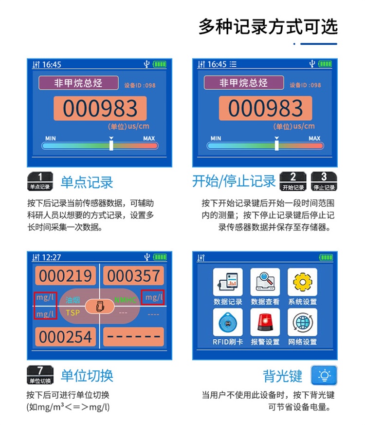 物聯(lián)網(wǎng)便攜式油煙濃度檢測儀可以廣泛應(yīng)用于監(jiān)管機構(gòu)的環(huán)境監(jiān)管、食堂餐廳的日常管理、夜市小吃的街道檢查以及餐飲行業(yè)企業(yè)的自我檢查等場合,具有高精度的探頭、穩(wěn)定性強,故障率低,小巧方便,易于攜帶,可以很好的進行油煙濃度、顆粒物、非甲烷總經(jīng)等參數(shù)的檢測。