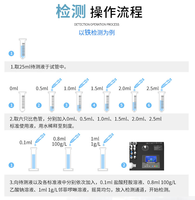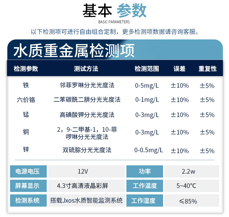 智能便攜式水質(zhì)重金屬檢測儀是精訊暢通采用進口高精度光源和光電比色法來檢測水中重金屬含量的一款水質(zhì)監(jiān)測設(shè)備。智能便攜式水質(zhì)重金屬檢測儀可檢測水中鐵、六價鉻、錳、銅、鋅等重金屬離子的含量,采用引導(dǎo)式操作,為用戶配套與預(yù)制試劑,能夠簡單完成檢測操作??蓮V泛應(yīng)用于企業(yè)污水、生活污水、地表水、科研院所、造紙印刷、冶煉鋼鐵等領(lǐng)域的水中重金屬檢測。