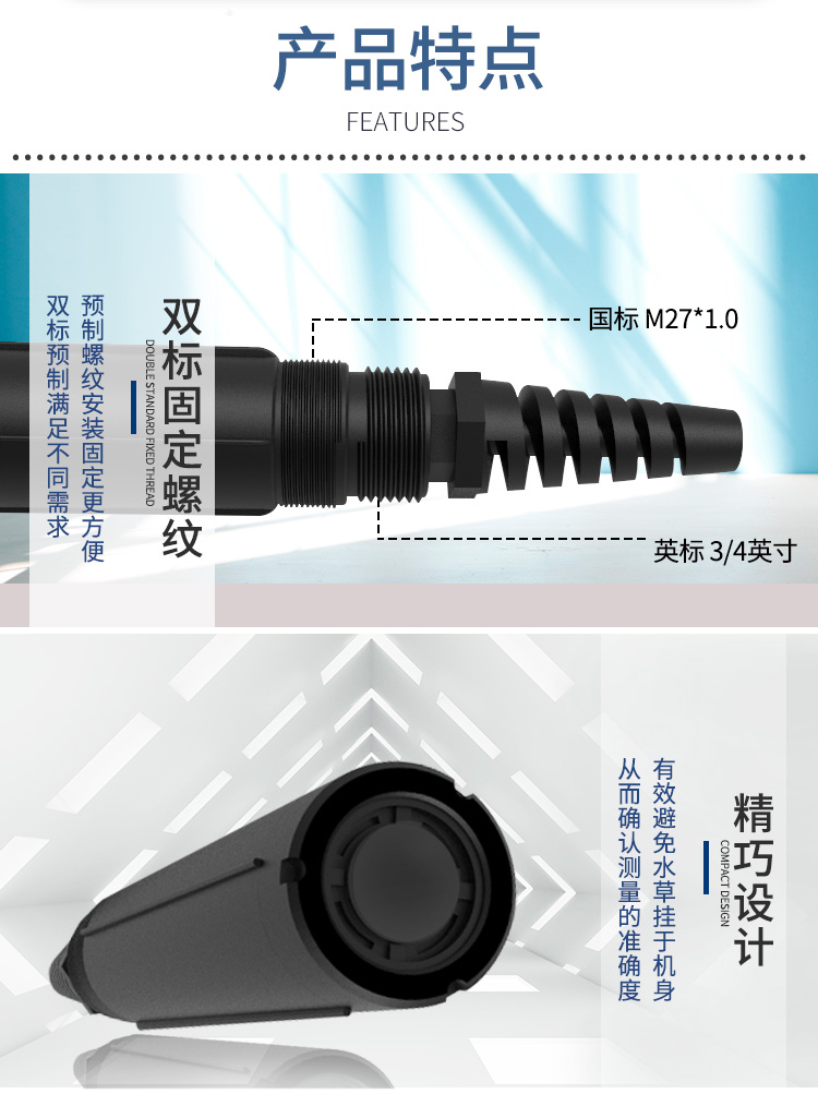 1、雙標固定螺紋:溶解氧檢測儀采用預制螺紋安裝固定更方便,雙標預制滿足不同條件。