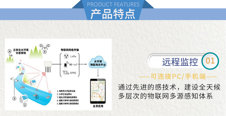 浮漂式水質(zhì)監(jiān)測系統(tǒng)借助傳感器技術(shù),結(jié)合了浮標(biāo)體、電源供電系統(tǒng)和數(shù)據(jù)傳輸設(shè)備,構(gòu)建了一個可以全天候、連續(xù)且定點觀測水質(zhì)的小型監(jiān)測系統(tǒng)。它能夠?qū)崟r將收集到的水質(zhì)數(shù)據(jù)傳輸至環(huán)境物聯(lián)網(wǎng)的云端。這種系統(tǒng)主要應(yīng)用于河道、湖泊及水庫等水域的水質(zhì)監(jiān)測工作,能夠自動并實時地監(jiān)測目標(biāo)水域的水質(zhì)狀況。通過網(wǎng)格化監(jiān)測河道水質(zhì)趨勢,有助于構(gòu)建完善的河道長效管理機制,進(jìn)而實現(xiàn)對水域或下游水質(zhì)污染的預(yù)測和預(yù)警,從而掌握水質(zhì)和污染物的通量,有效防治水污染事故的發(fā)生。